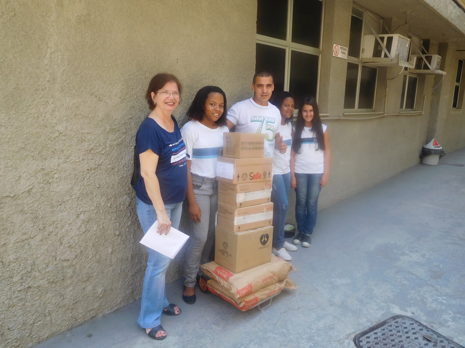 muitos membros da Comunidade Escolar doaram gelatinas e leite em pó no dia e