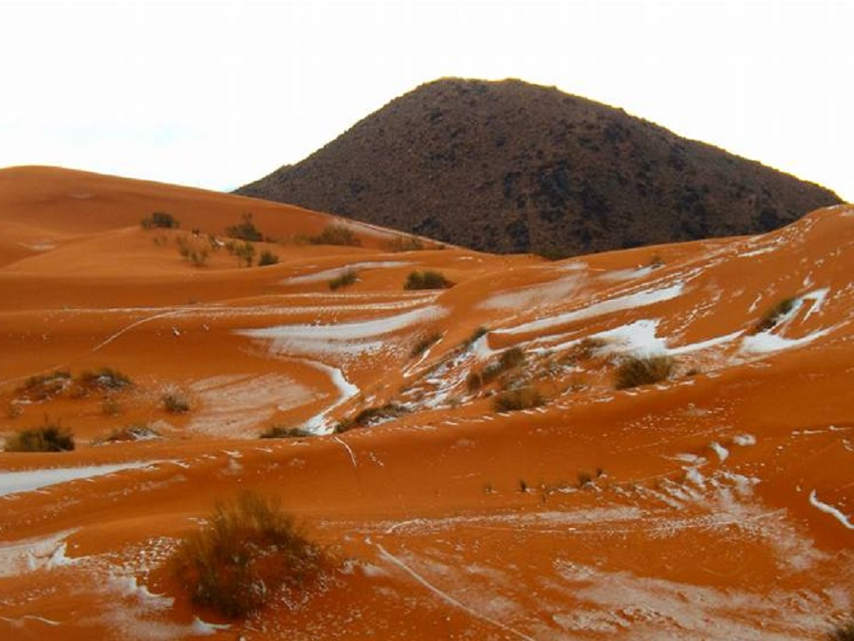 de acontecer foi a precipitação de neve no deserto do Saara, na região de Aïn Sefra, localizada na província de Naâma, na Argélia. Isso mesmo!